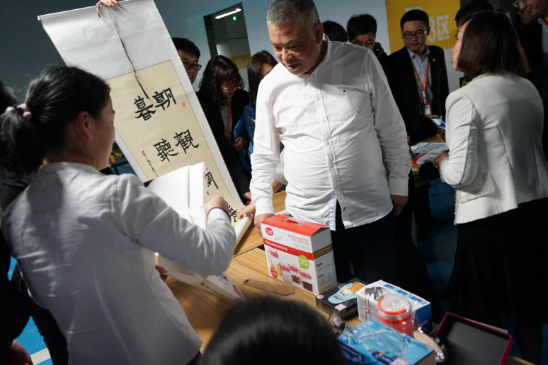 上午十一點,各中心的愛心義賣組陸續到達義賣場地,迅速布置好本組的義賣物品,遠遠望去,琳瑯滿目的商品令人應接不暇。不僅有圖書畫冊、工藝飾品、生活家居,還有古玩字畫、酒水茶葉等等。