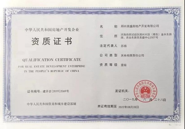 呈鑒時代的美盛力量丨熱烈祝賀美盛地產(chǎn)集團(tuán)榮膺房地產(chǎn)開發(fā)企業(yè)國家一級資質(zhì)