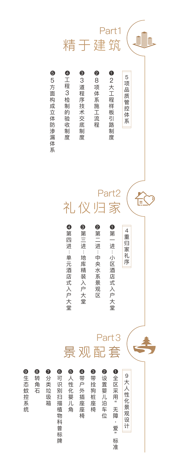 ◆ 在工程中始終堅持樣板引路制度,項目建立材料樣板與施工樣板,施工樣板包括工藝工序樣板、交付樣板和細部節點樣板。通過2大樣板制度明確質量要求,8項體系施工流程細化每一道工序,對工程做到事前控制、統一標準,提供驗收依據,為工程品質提供了重要保障