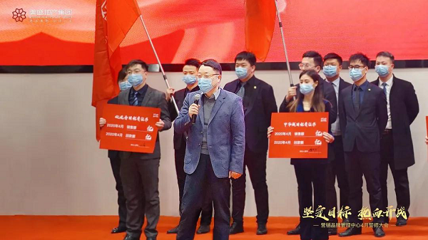 一份誓言,就是一份沉甸甸的保證。使命就是信念,超越就是勝利!在激情迸發的現場氣氛下,美盛地產集團領導為集團營銷體系及各項目團隊頒發2020年4月銷售目標軍令狀,各條線負責人信心滿滿的簽下了4月份目標責任書,并表示將在集團公司的領導下,用執著的信念和永不言棄的決心勇攀巔峰!