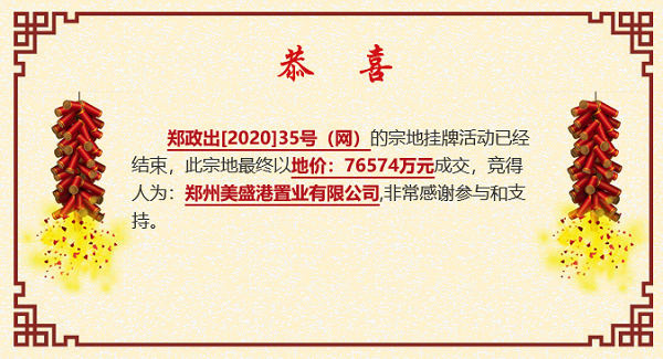 2020年5月20日,美盛以雷霆之勢連續摘得金水區核心版塊三宗地塊,短短三個多月,2020年9月4日,美盛地產集團金水區再摘新地——鄭政出〔2020〕35號(網)地塊,該地塊位于北三環路北、渠東路東,為陳砦城中村改造用地。城市升級,煥新時代,美盛當仁不讓,再度續寫中原人居新篇章!