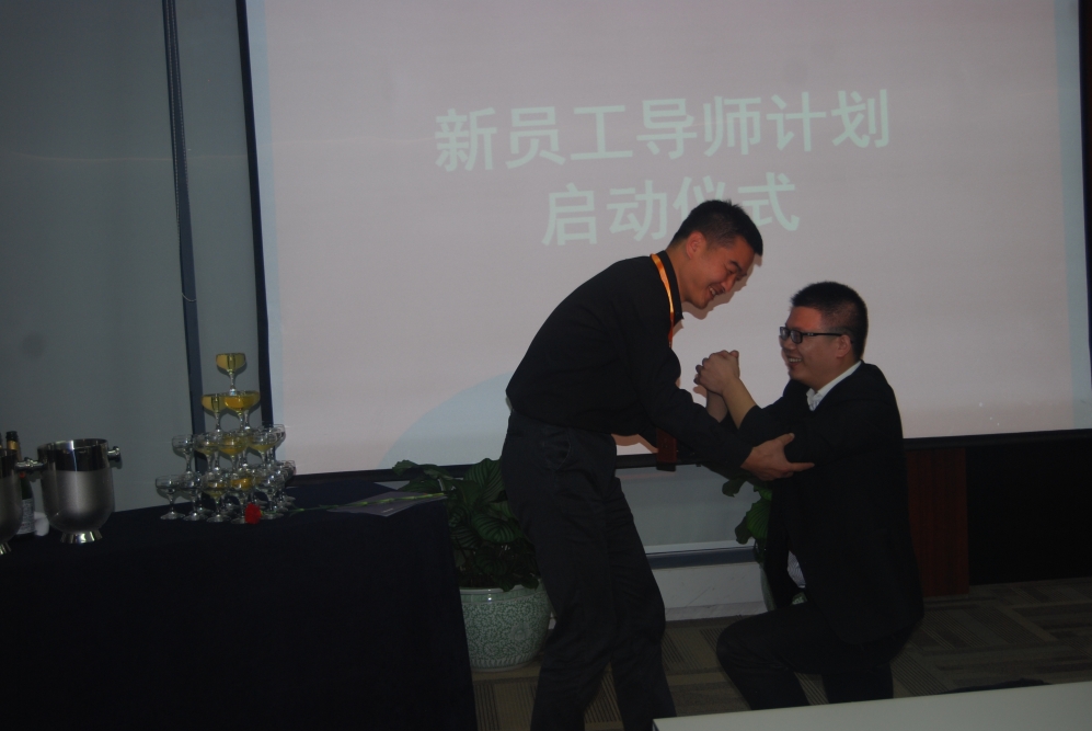 新入職的員工以“導師,請收我為徒”為主題進行了精彩的演講,各位新員工為了感動自己的導師,也是拼了,各出絕招,將氣氛推向了高潮。